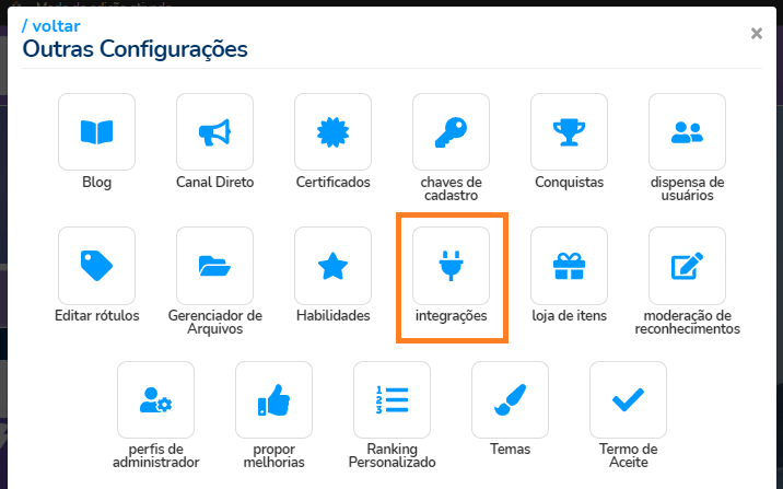 Acesse sua instância do Engage com seu usuário e senha de administrador. Habilite a área administrativa navegue até: Outras Configurações>Integrações>Microsoft:
