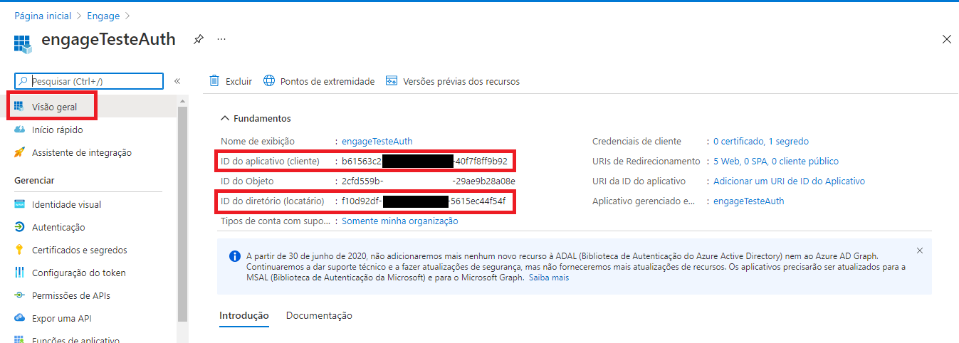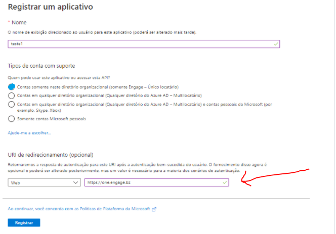 O primeiro passo é registrar o Engage como uma aplicação no Azure AD.