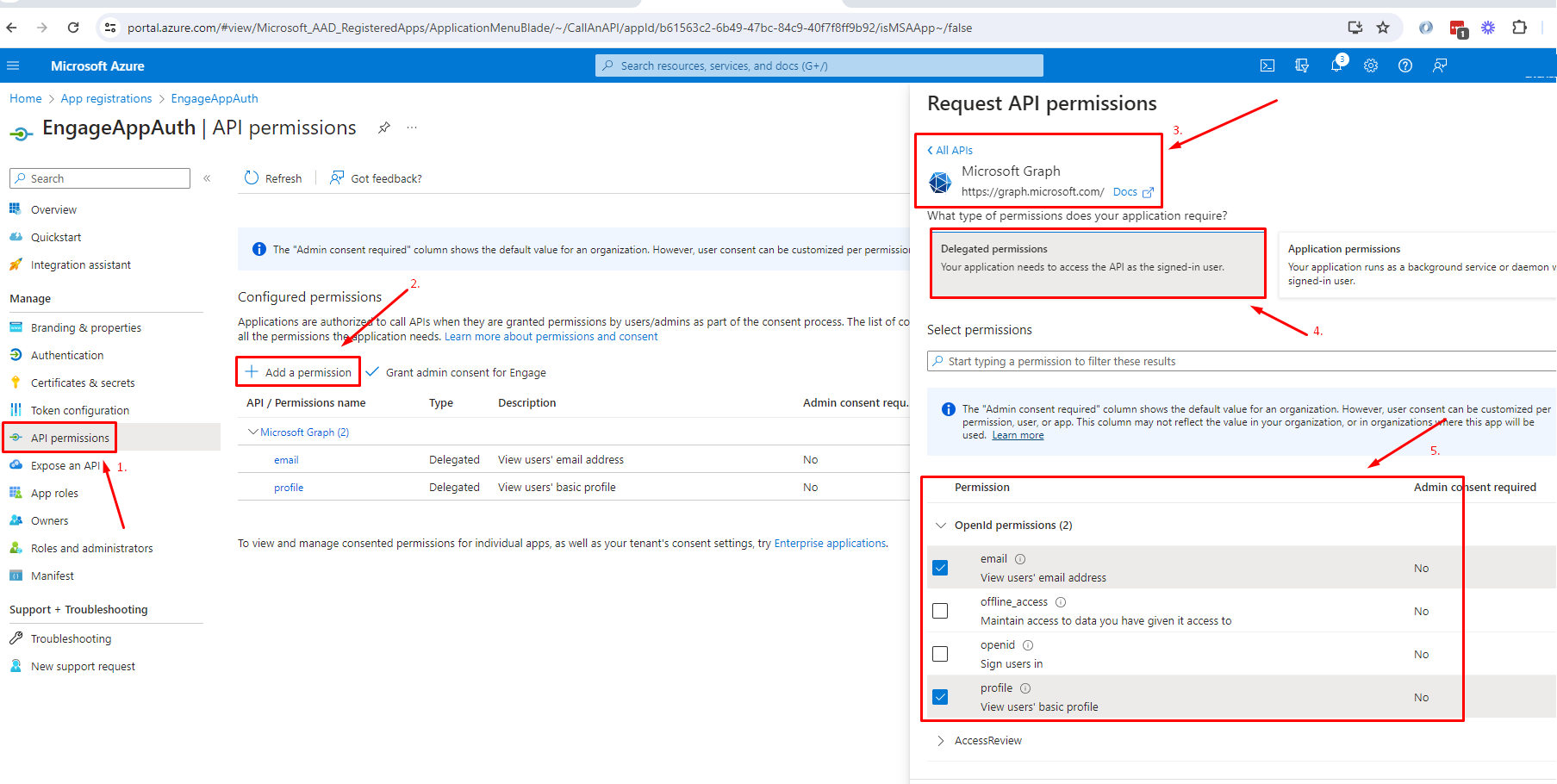 Selecione Microsoft Graph e escolha Delegated Permissions (Permissões Delegadas).