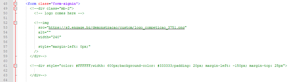 Importante, no arquivo index.html de exemplo, esta seção encontra-se “comentada”, portanto é ignorada pelo sistema.