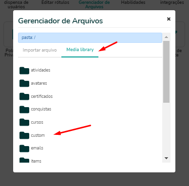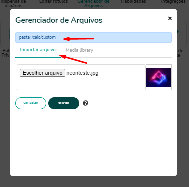 Carregando arquivos na plataforma através do Gerenciador de Arquivo