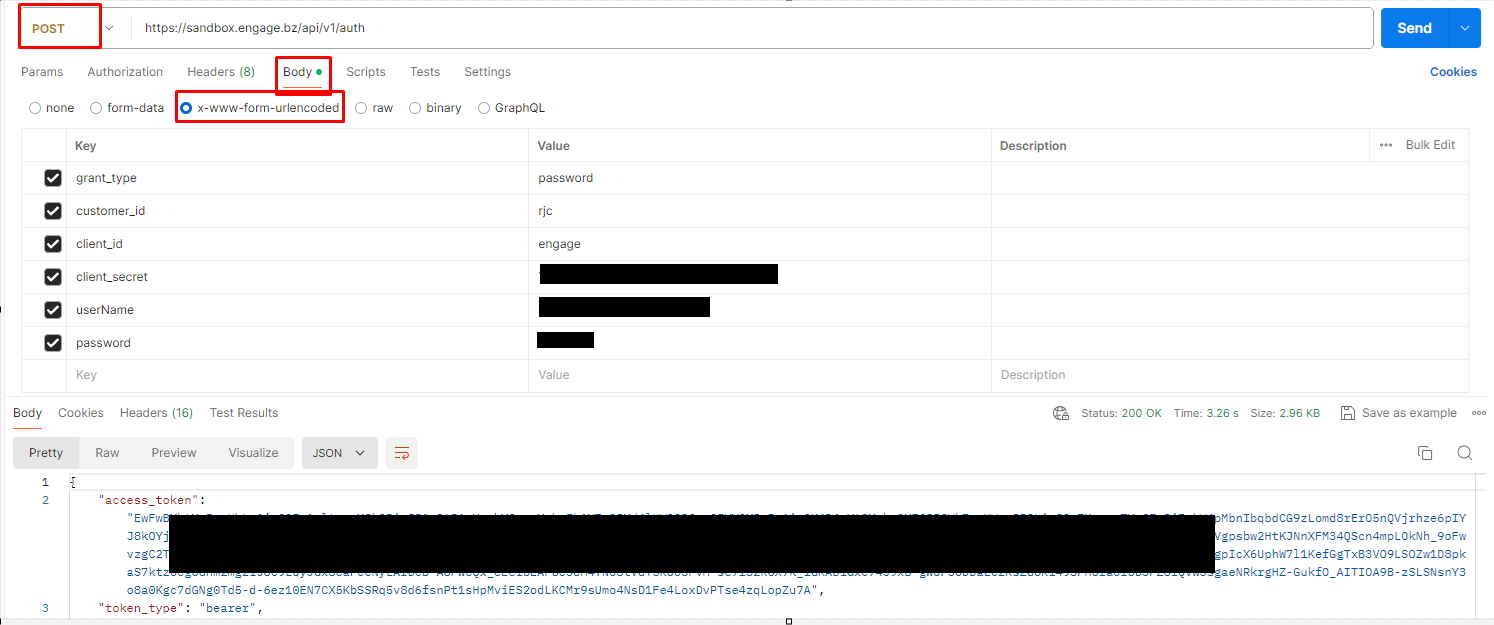 OBS: O Content-Type dos parâmetros acima deve ser: application/x-www-form-urlencoded, conforme exemplo abaixo feito através do software Postman: