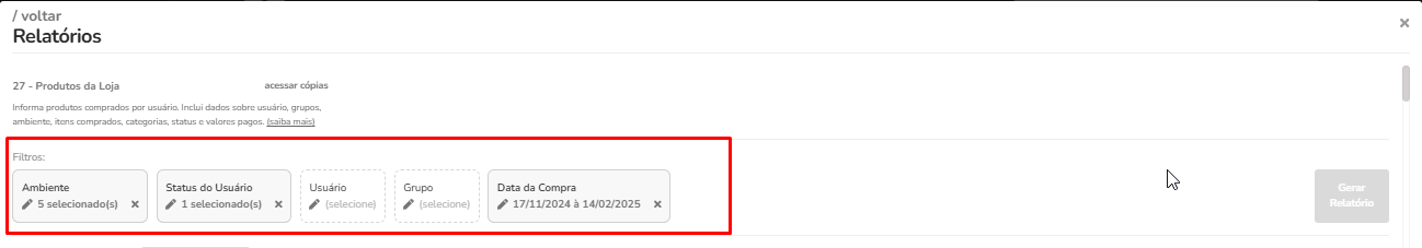 Esses filtros permitem personalizar os relatórios de acordo com as necessidades específicas do administrador, mas a maioria deles não é obrigatória. Selecionar os filtros adequados pode ajudar a obter informações mais precisas e relevantes nos relatórios.
