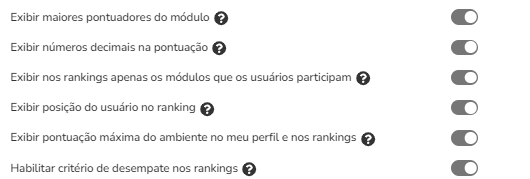 Exibir pontuação máxima do ambiente no meu perfil e nos rankings: Configure a exibição da pontuação máxima do ambiente no perfil do usuário e nos rankings.