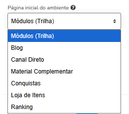 Página inicial do ambiente: Determina qual tela o usuário deve visualizar ao acessar o treinamento,