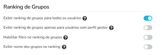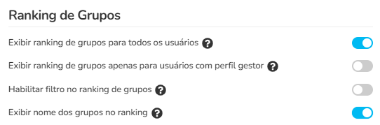 Exibir ranking de grupos para todos os usuários: Esta opção exibe o ranking de grupos para todos os usuários.