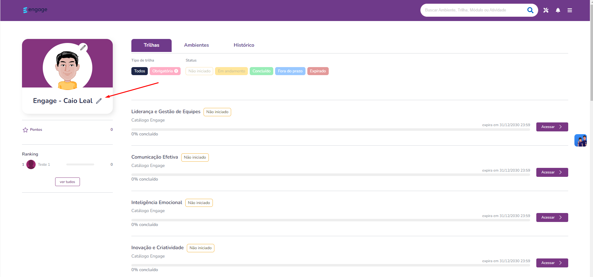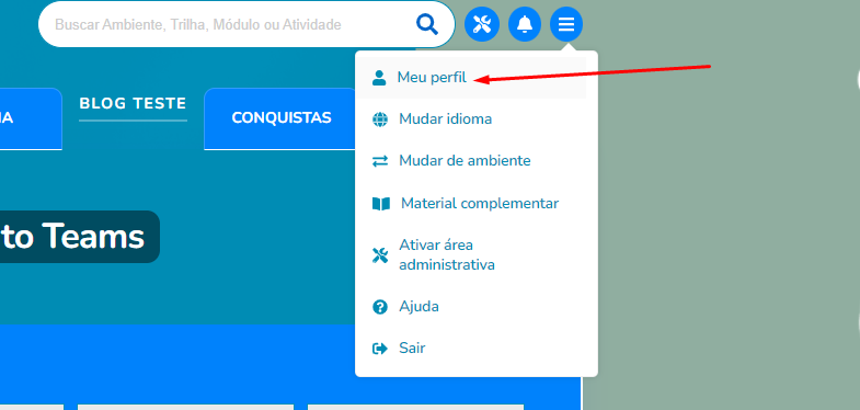 Outra maneira de o próprio usuário alterar sua senha é acessando o Meu perfil na plataforma. Para isso: