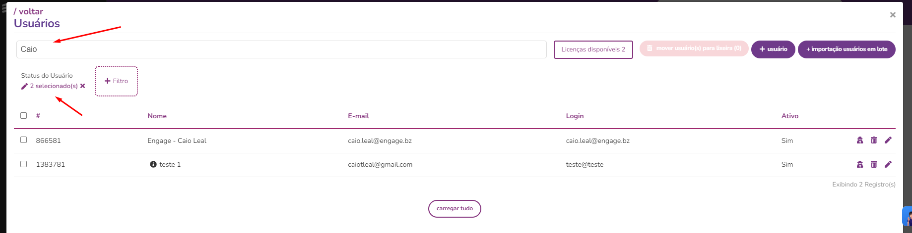 Pesquise pelo usuário desejado, lembre-se de adicionar o filtro de usuário Inativo se necessário .