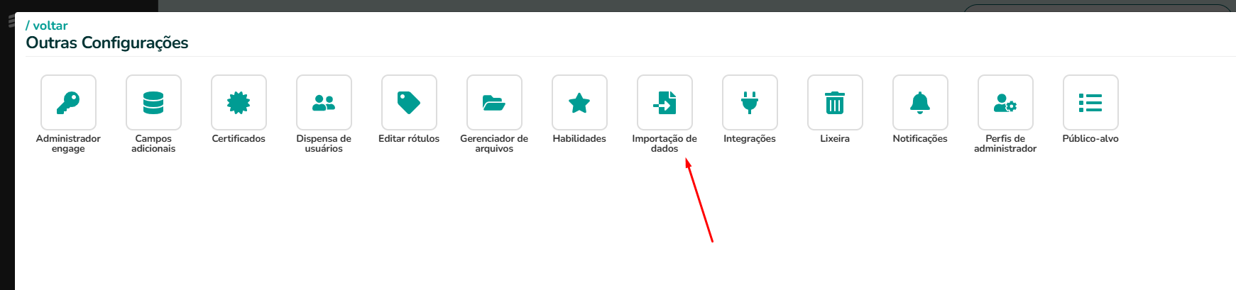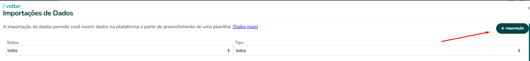 Retorne à plataforma e, na tela de Importação de Dados, envie a planilha preenchida.