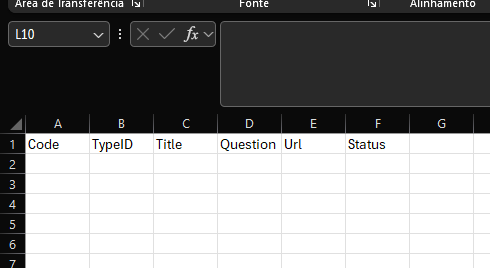 - Para evitar alterações indevidas, sugerimos que excluam todos os dados e deixem apenas o cabeçalho: