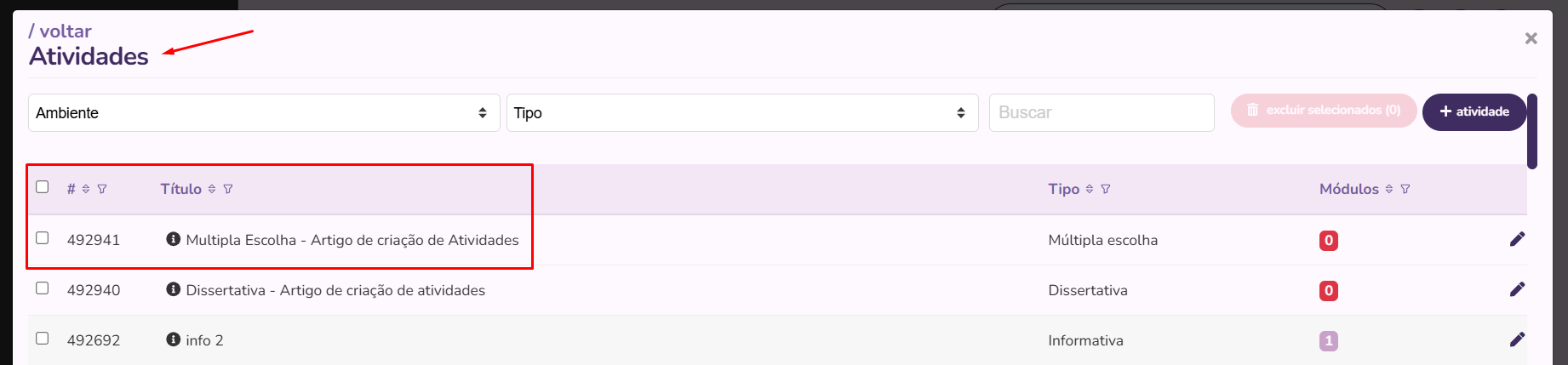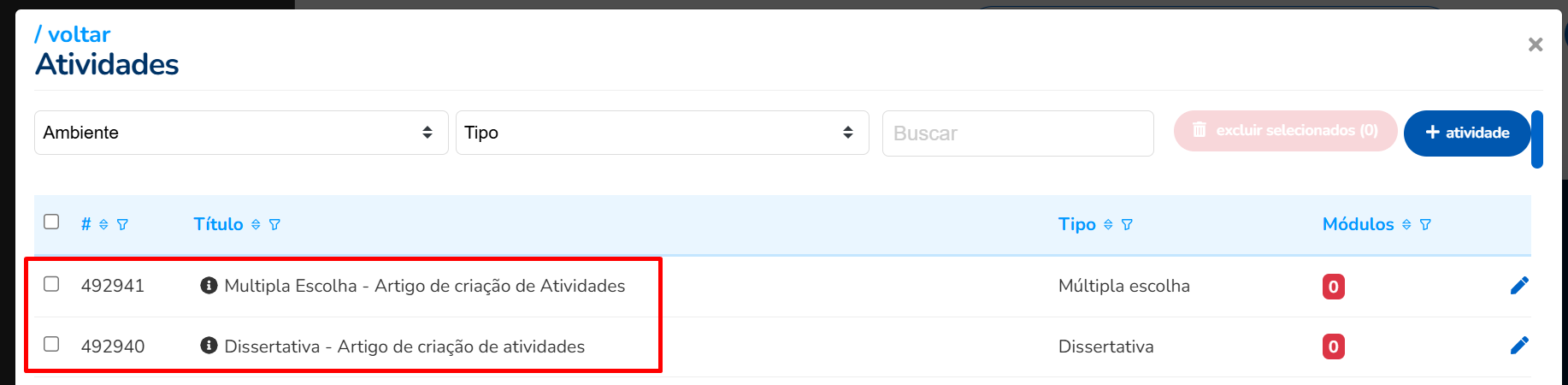 Neste artigo abordaremos o passo a passo para criação de atividades em massa e vinculação das mesmas nos módulos.