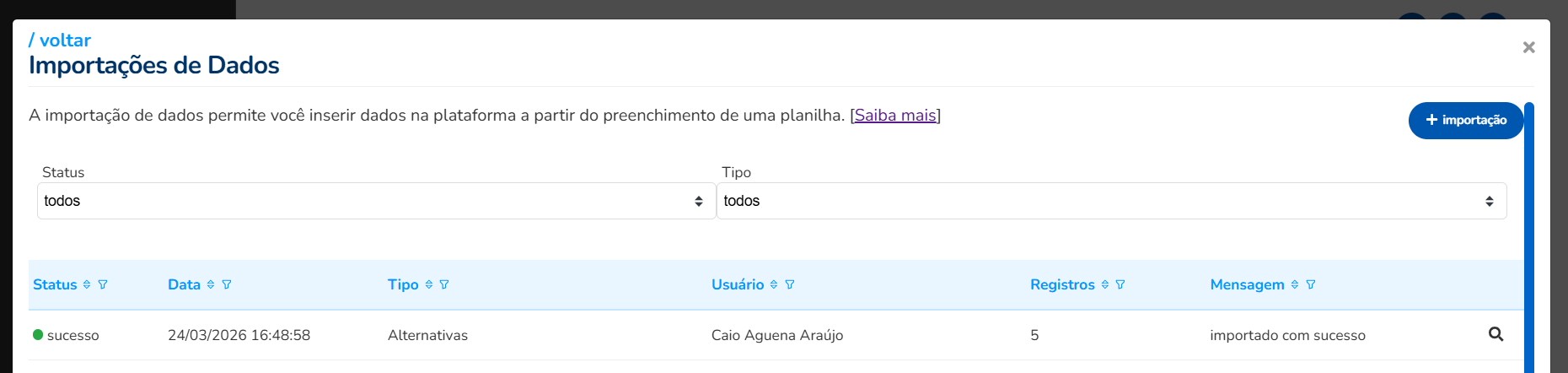 - Acessar o menu Outras Configurações, Importação de Dados, baixar o template Alternativas.